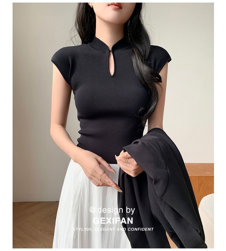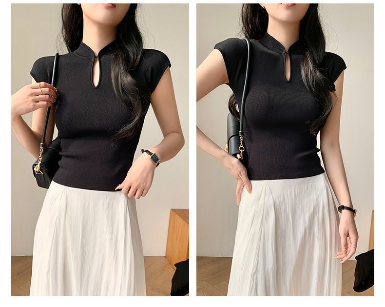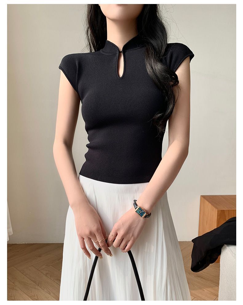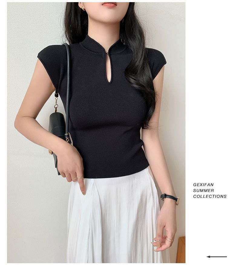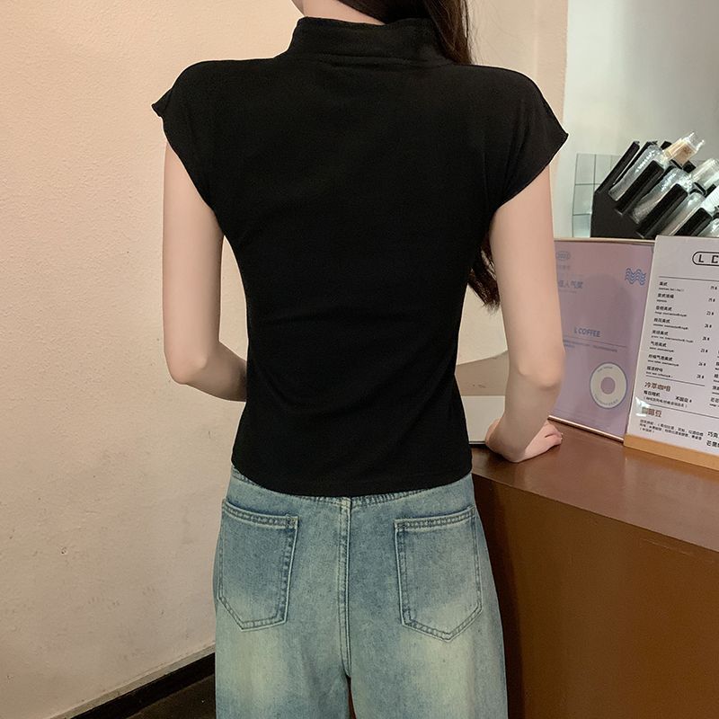 Style Traditional Button Half-Sleeve T-Shirt Women's Retro Slimming Short Fit Versatile Top