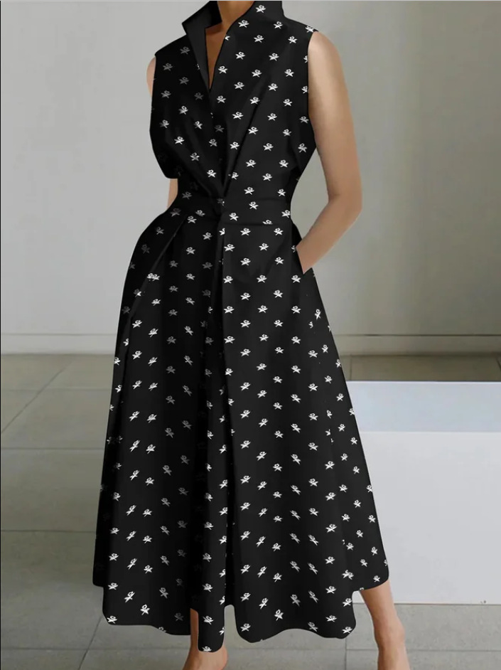 Summer Women's Dress Fashion Commuter Solid Color Women's Retro Lapel Elastic Waist Shirt Long Sleeve Big Swing Women's Dress