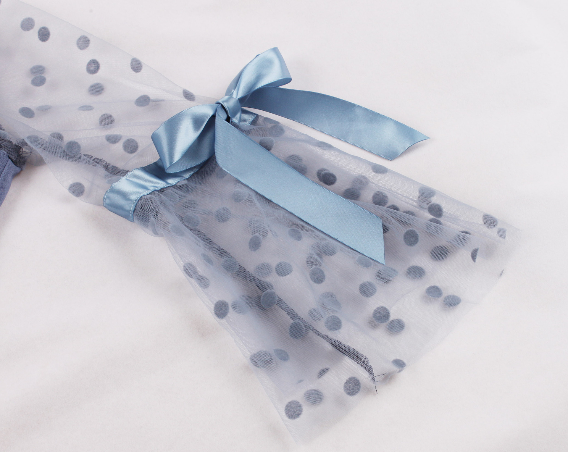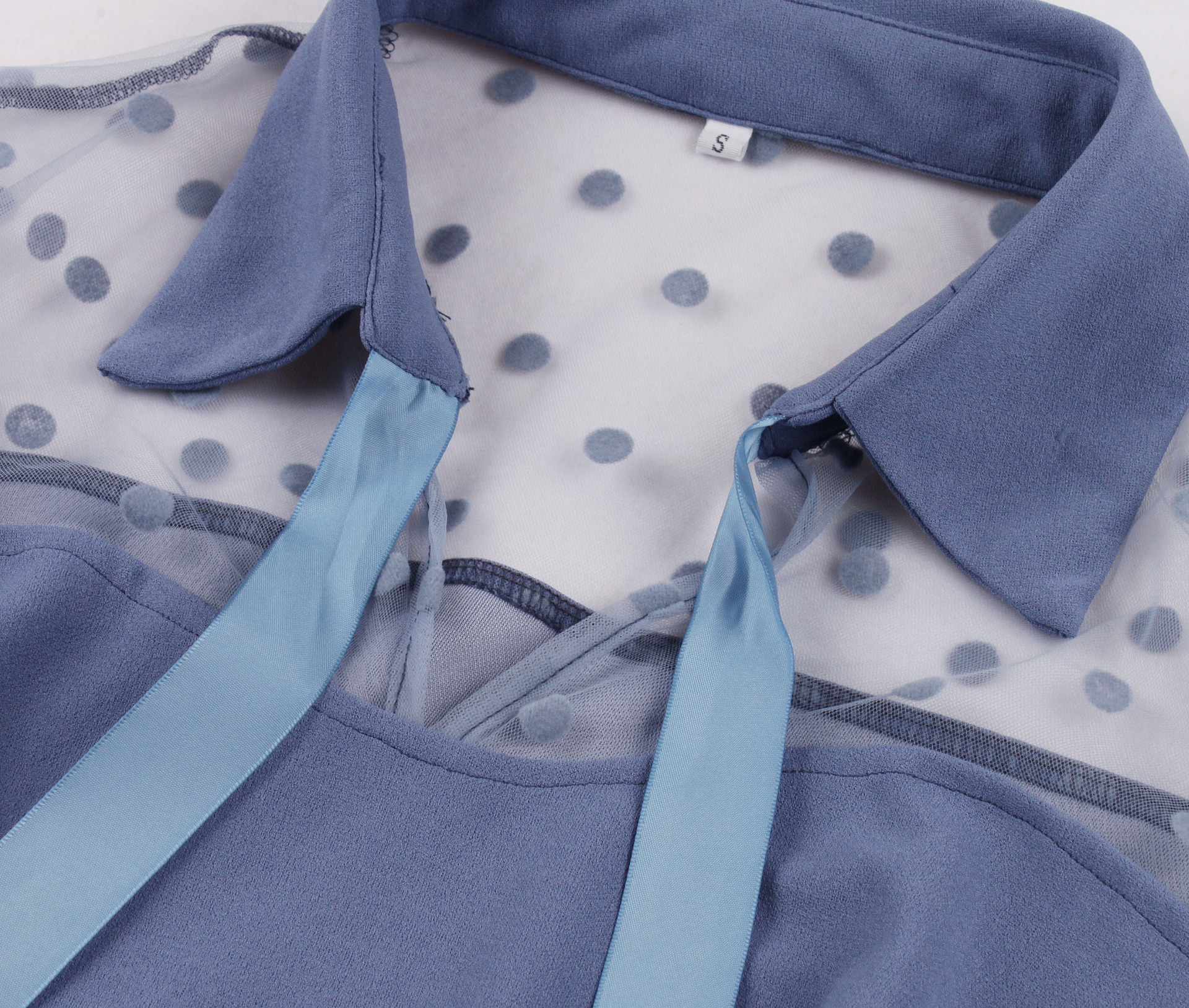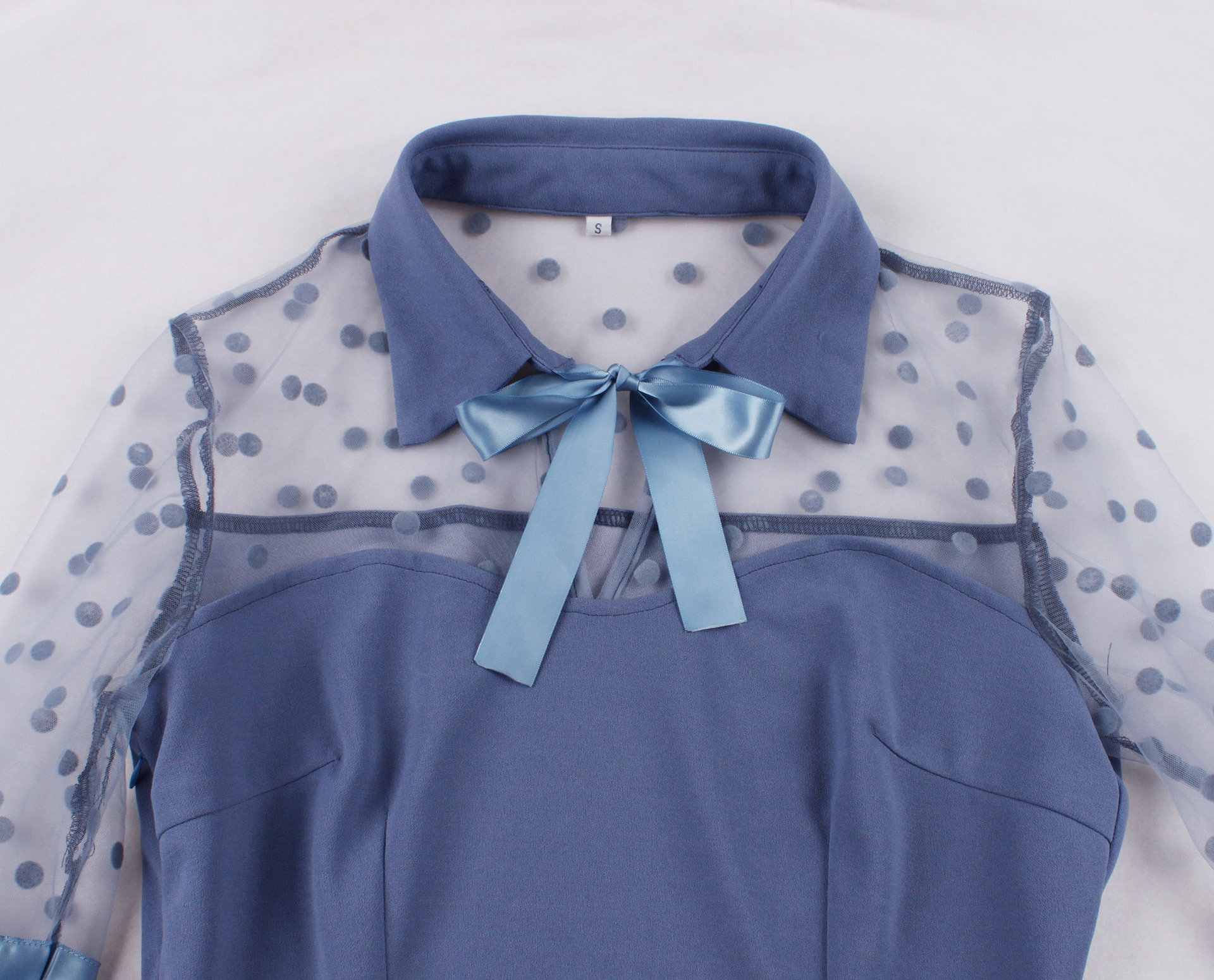Sweet Elegant Vintage Polka Dot Print Mesh Bow Flared Sleeve Dress