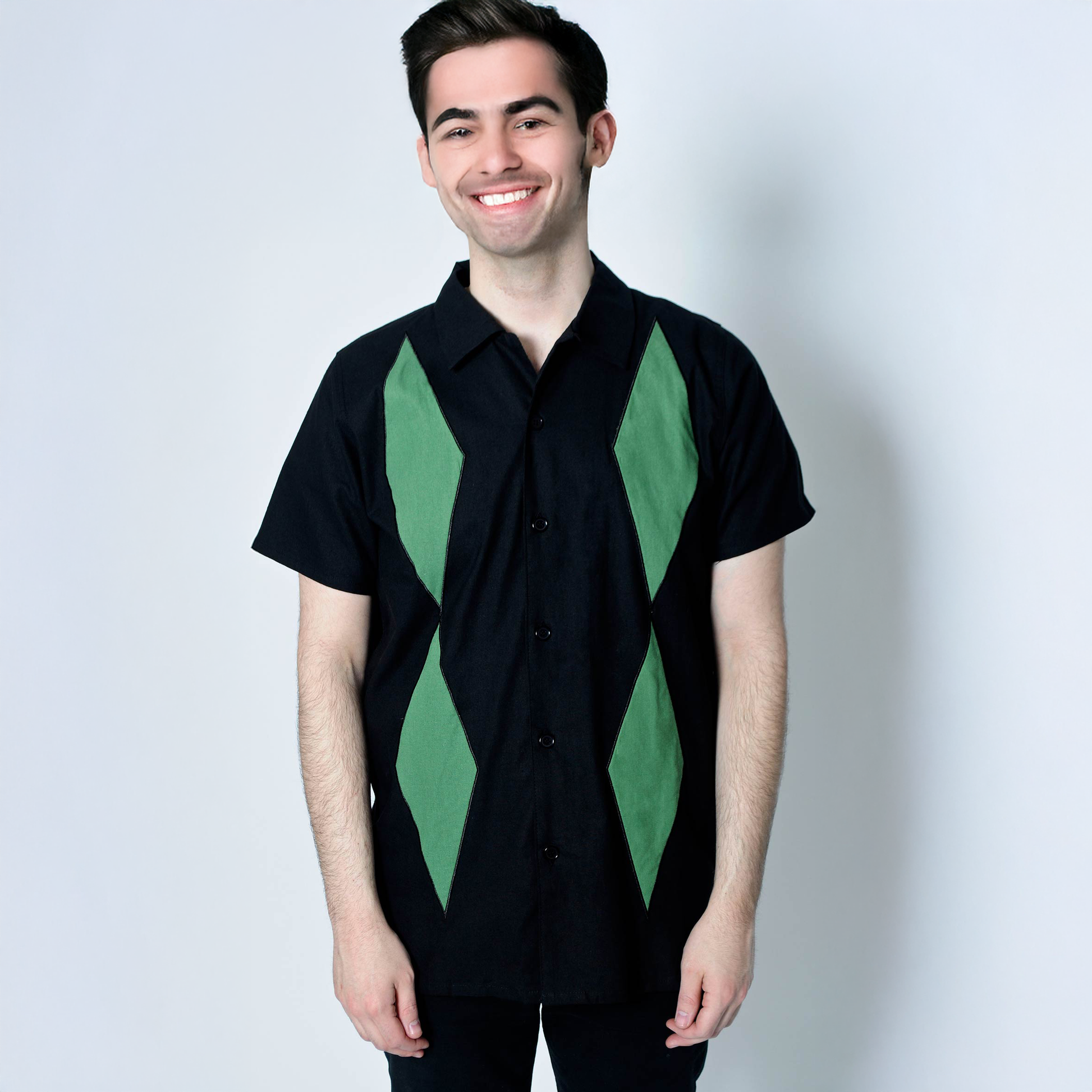 This green bowling shirt with Tad's Tractor Co. logo detailing is a classic retro piece!