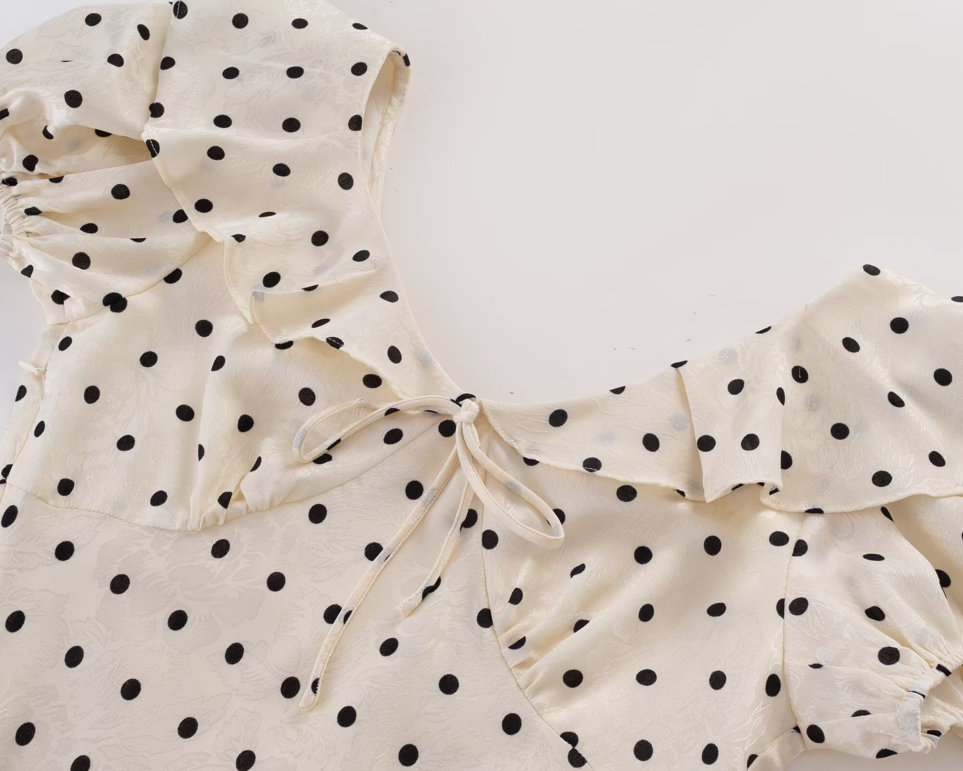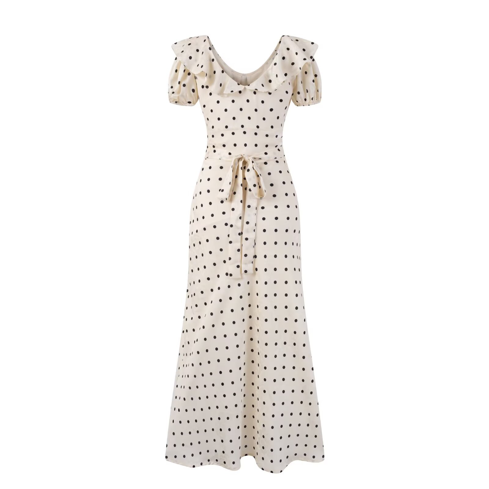 Temperament long skirt French V-neck retro lotus leaf vacation dress