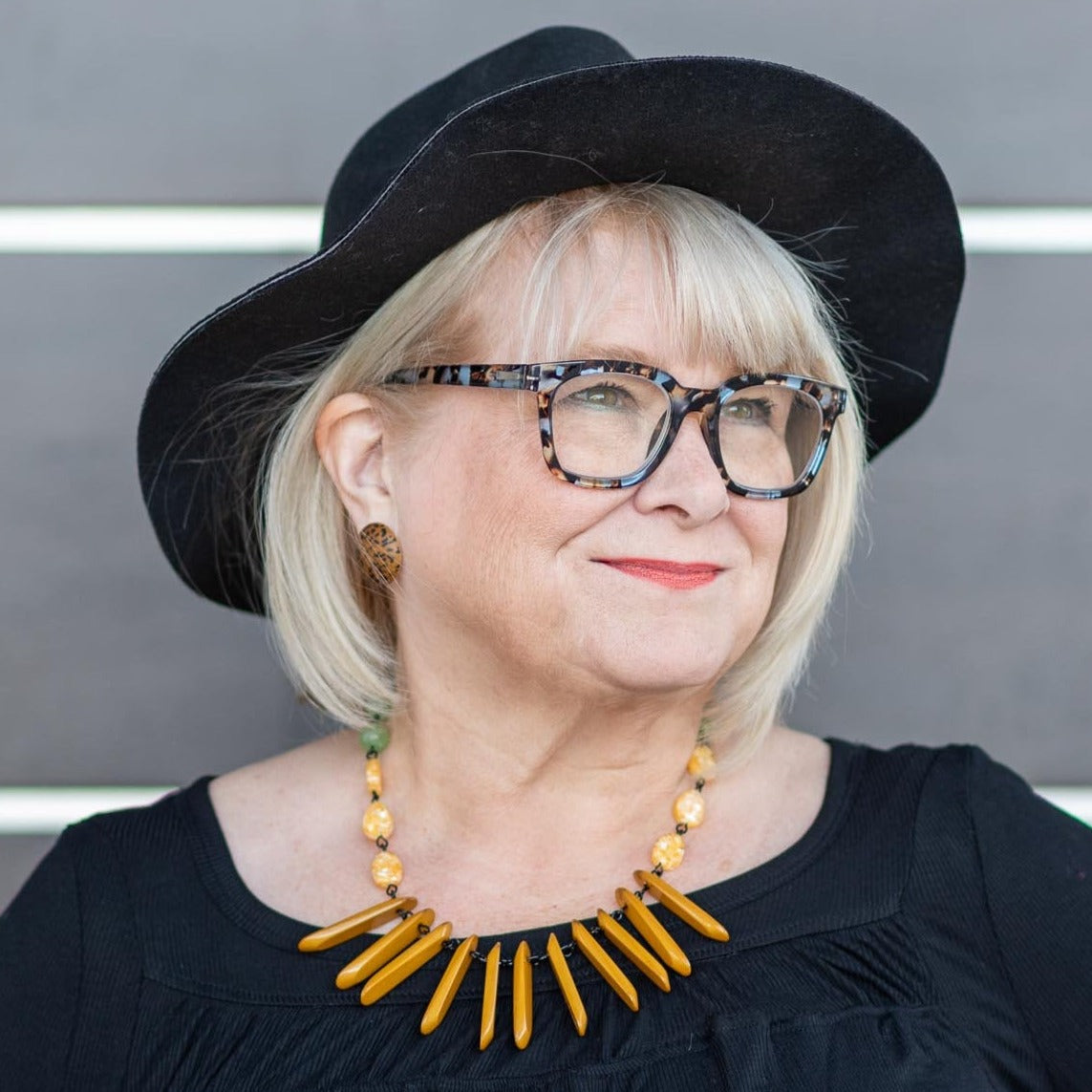 Desert inspired terra firma necklace featuring clay colored spike drops with hints of moss green & yellow with a little sparkle.