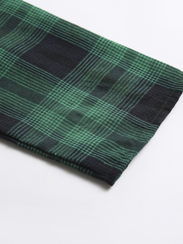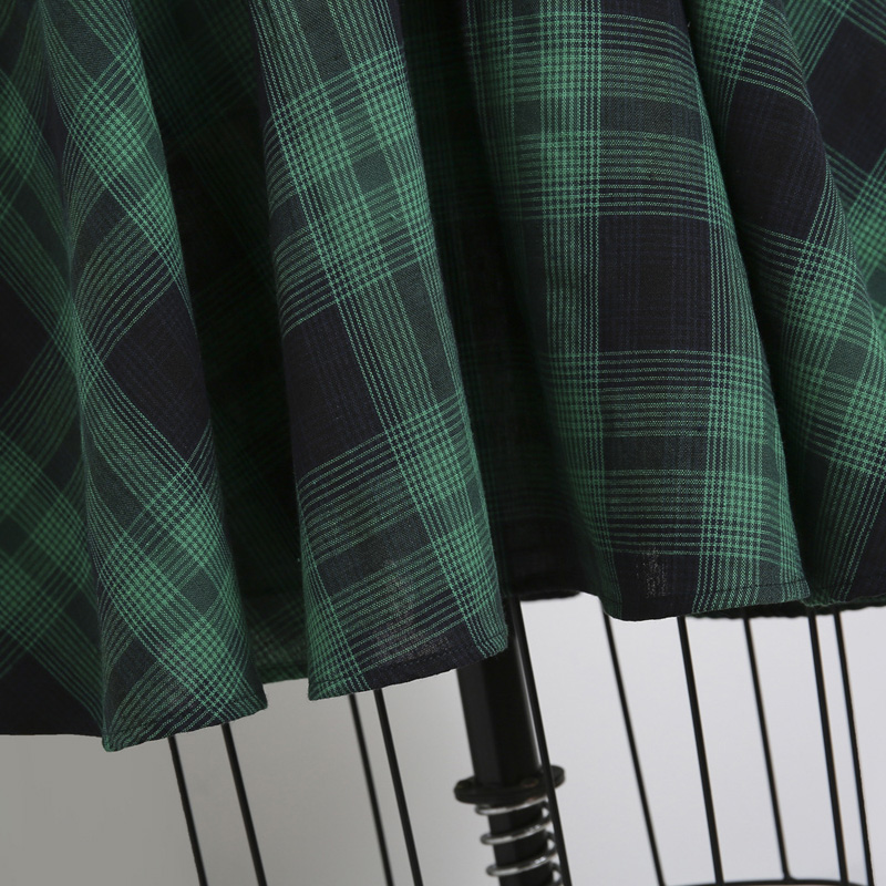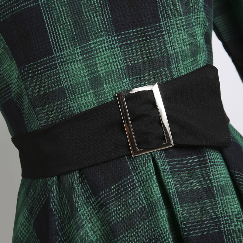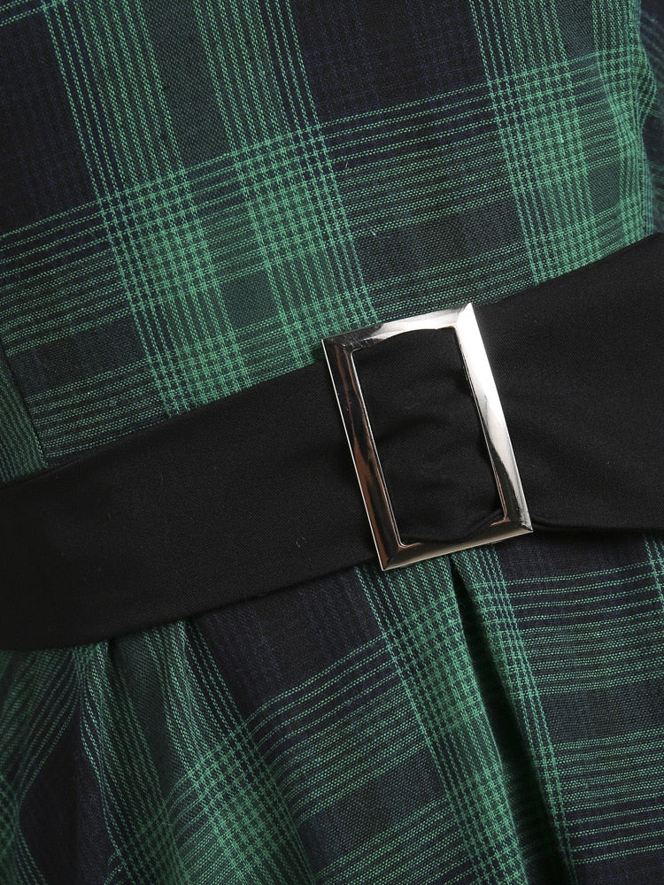 Tonval Green Plaid Elegant 1950s Style Vintage Robe V Neck High Waist Dress 3/4 Length Sleeve Women Retro Clothes Midi Dresses