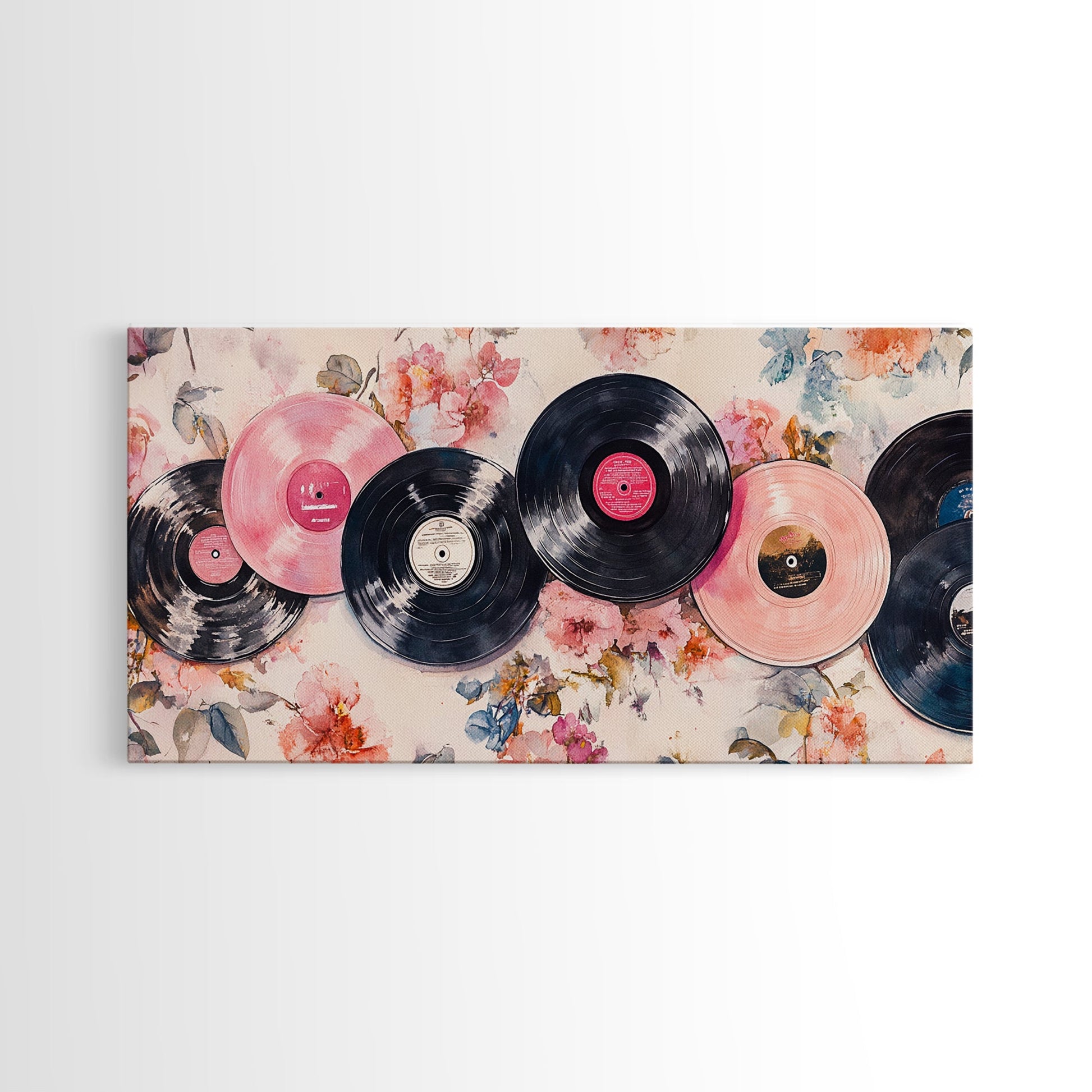 Vinyl Record Nostalgia Canvas Print Featuring Music Wall Art Retro Wall Art Pink Wall Art Moody Art Rustic Art Guest Room Living Decor
