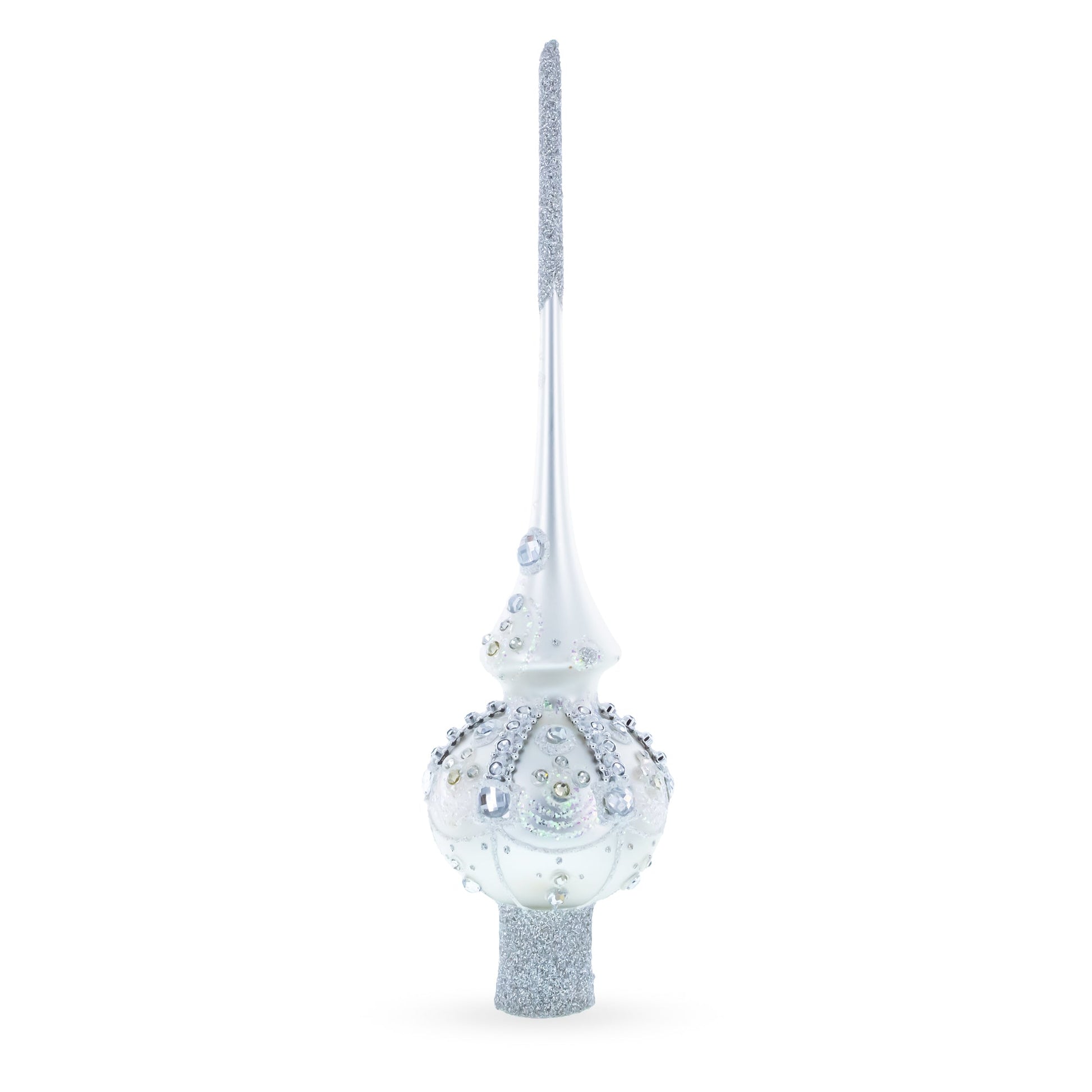 White Jewels on Silver Glass Christmas Tree Topper 11 Inches