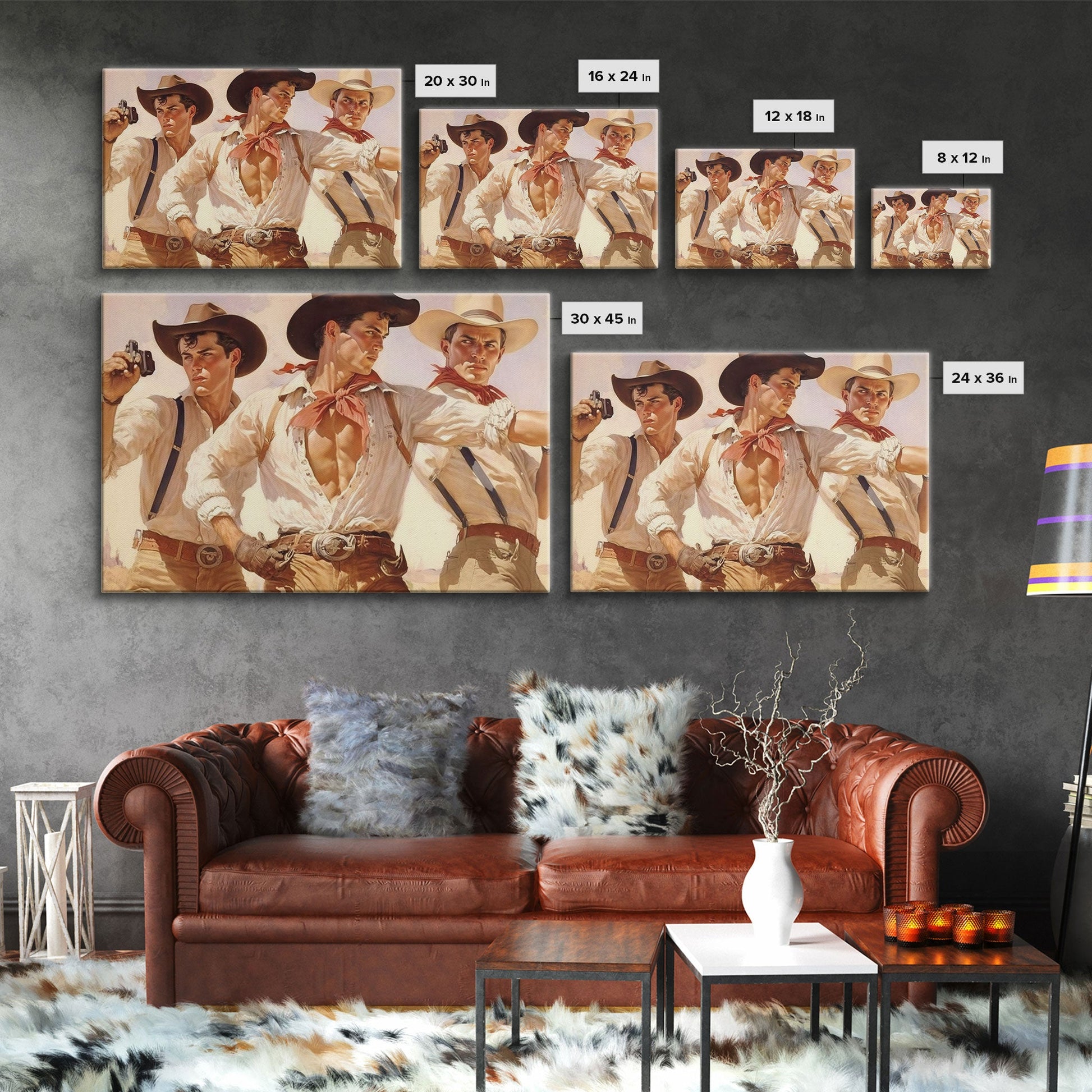Wild West Cowboy Art, Framed Canvas Print, Cowboy Art Print, Western Art Print, Western Cowboy Gift, Retro Cowboy Decor, Western Cowboy