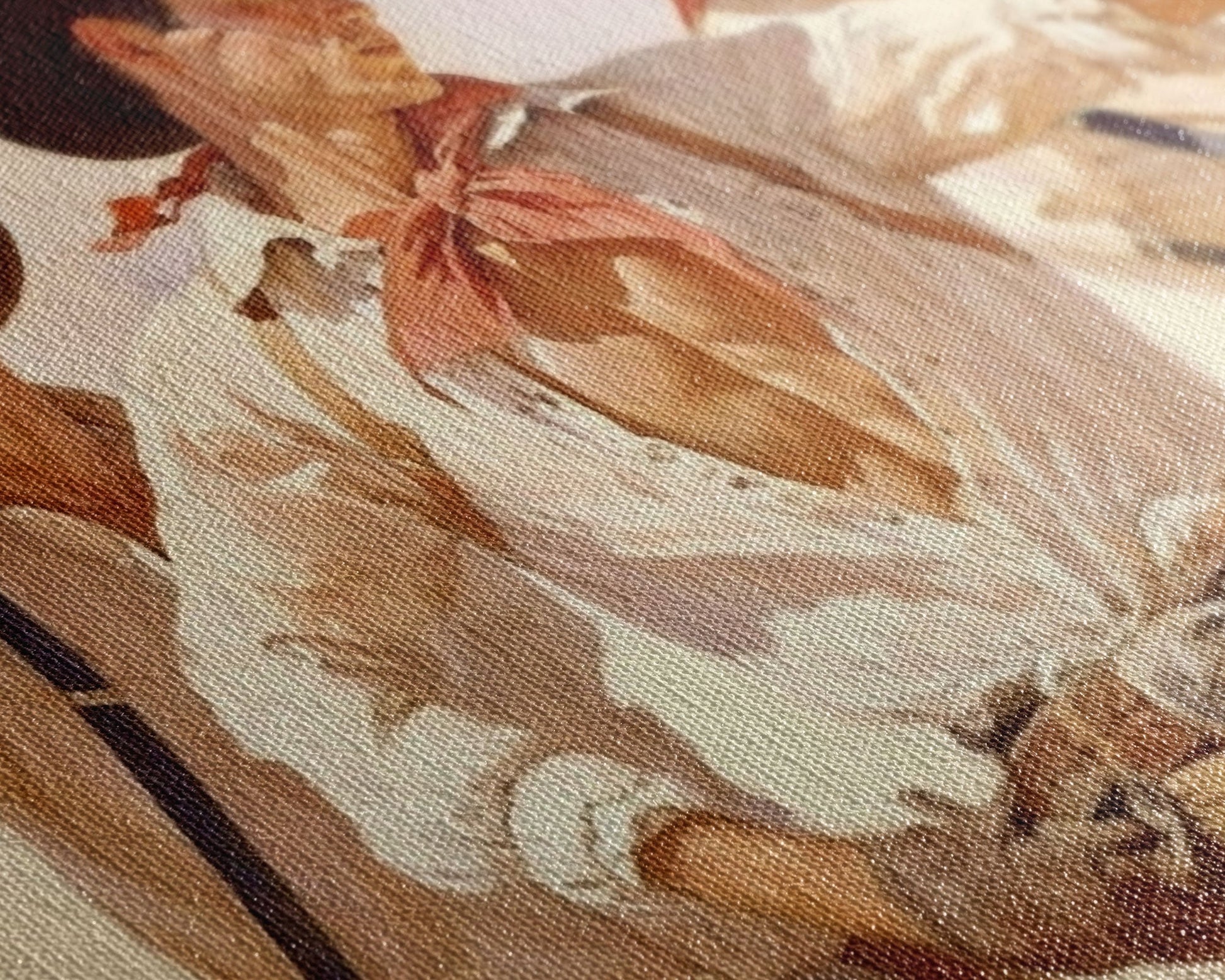 Most of our canvases are made in the USA, with the exception of canvases ordered with the light oak unstained frames, and any large canvases (24x48, 30x60, 16x48 and 20x60) ordered WITH a frame. These are temporarily made in and shipped from Europe, while we try to find a more consistent supplier in the USA.