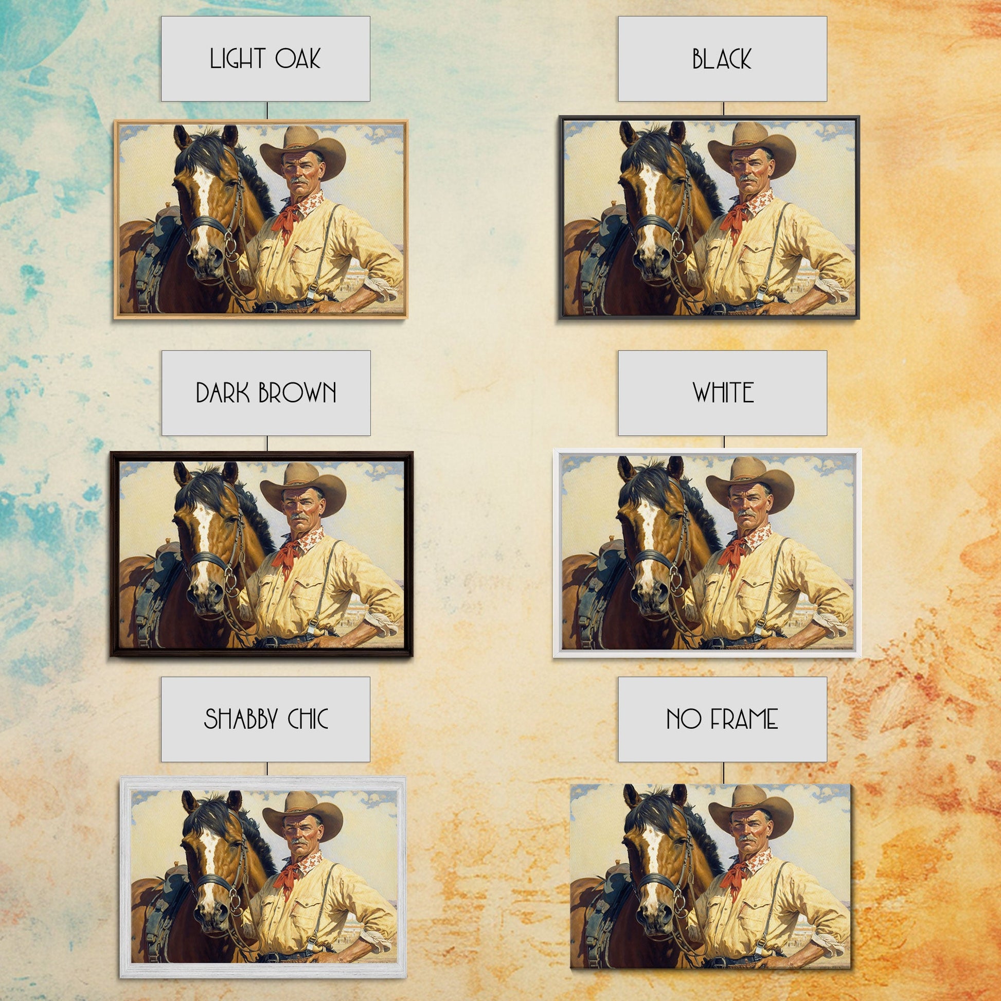 Wild West Cowboy Art, Framed Canvas Print, Cowboy Art Print, Western Art Print, Western Cowboy Gift, Retro Cowboy Decor, Western Cowboy