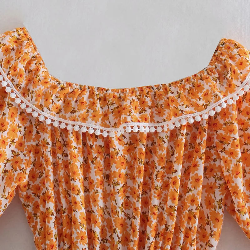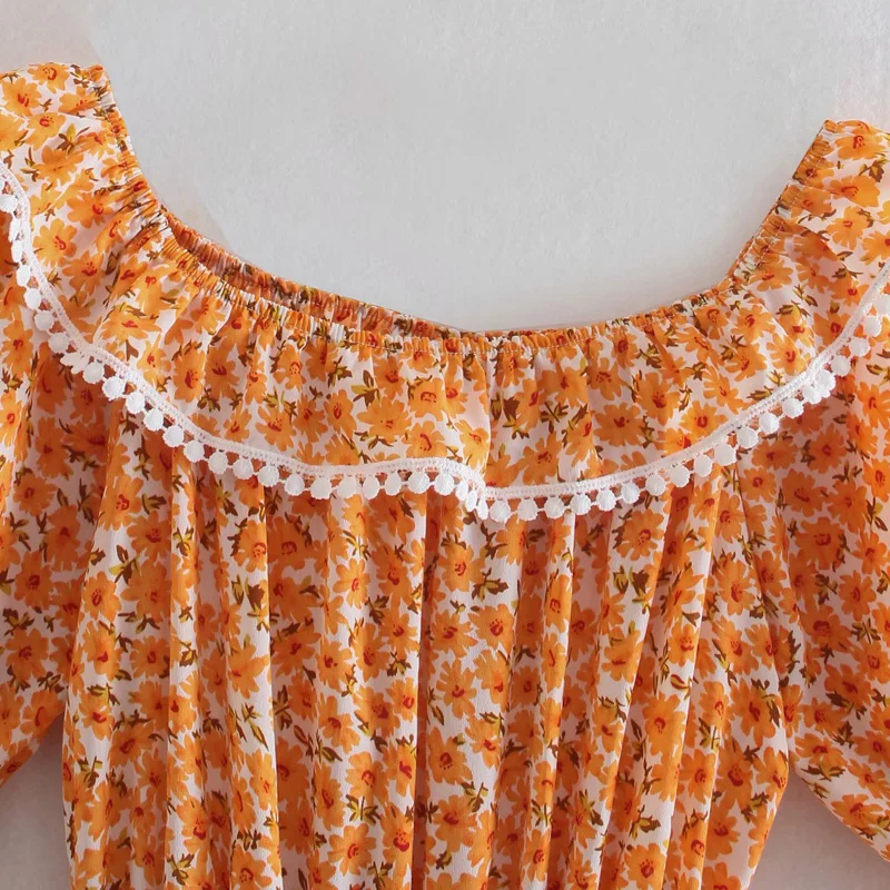 Women 2021 Summer Vintage Print A-Line Dress Short Sleeve Off shoulder Female Fashion Elegant Mini Dresses
