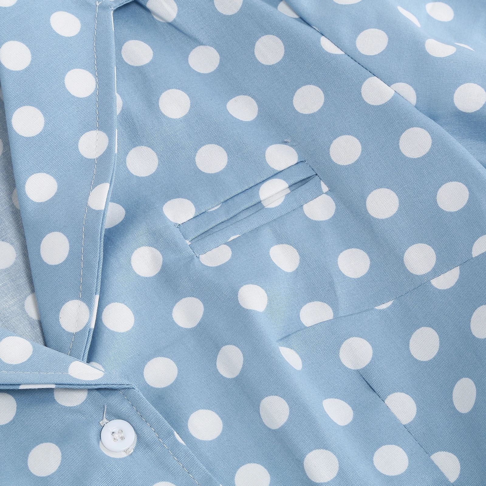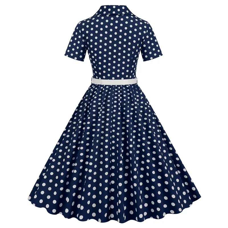 Women Vintage Polka Dots Dress Retro Elegant V-Neck Office Cocktail Tea Party 1950s 40s Swing Dress Summer Dress Short Sleeves
