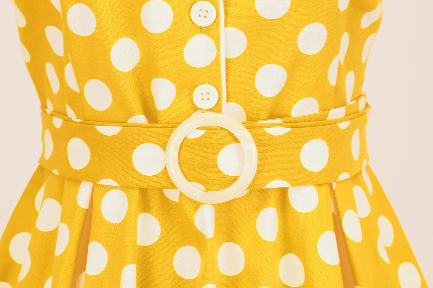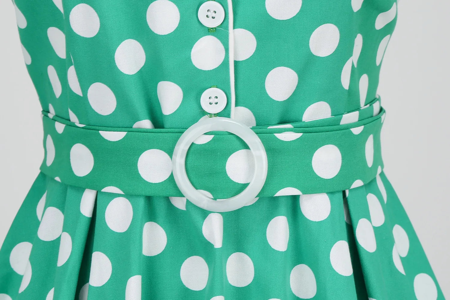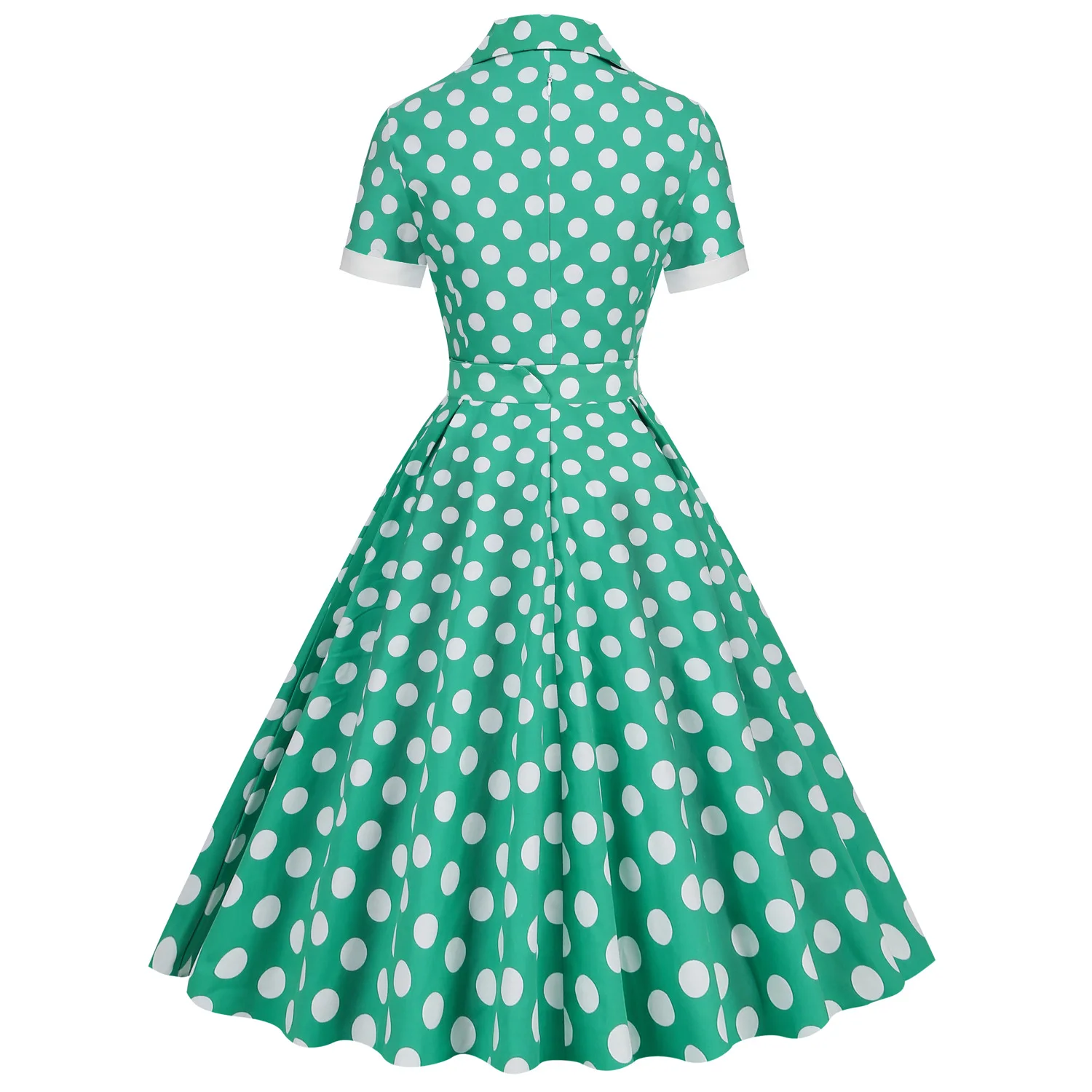 Women Vintage Polka Dots Dress Turn-down Collar Rockabilly Cocktail Party 1950s 40s Swing Dress Summer Dress