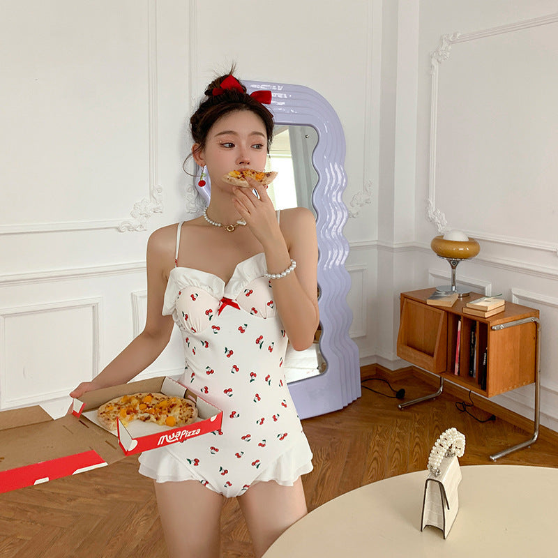 Women's Slim Looking Belly Covering Sweet Student Hot Spring One Piece Swimsuit